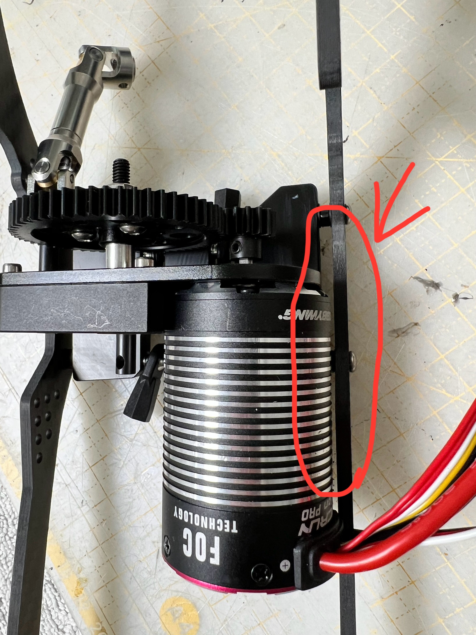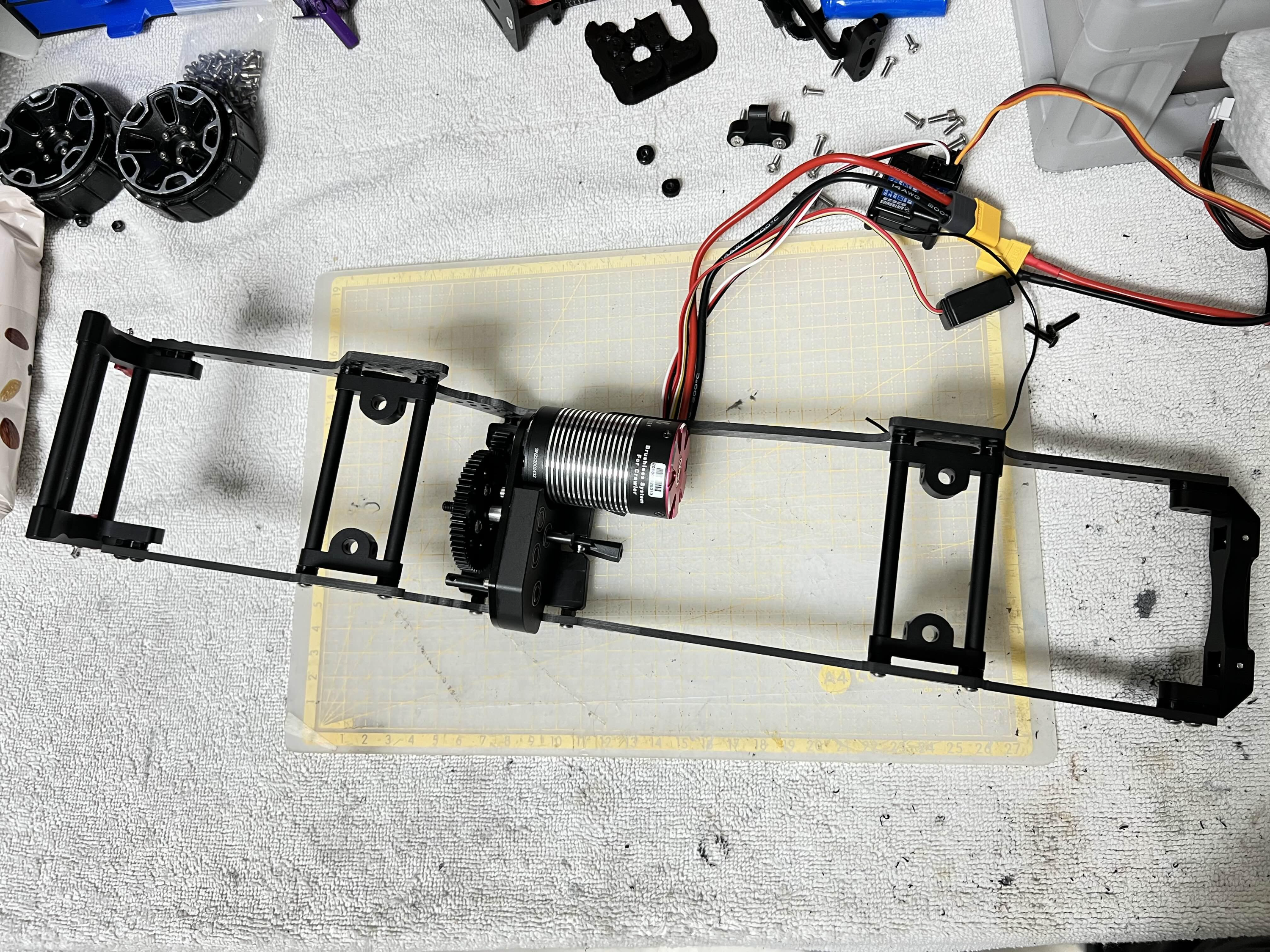 샷시를 앞쪽으로 놓고 봤을때 모터는 왼쪽에 위치하도록 재조정을 한 후 장착했습니다.