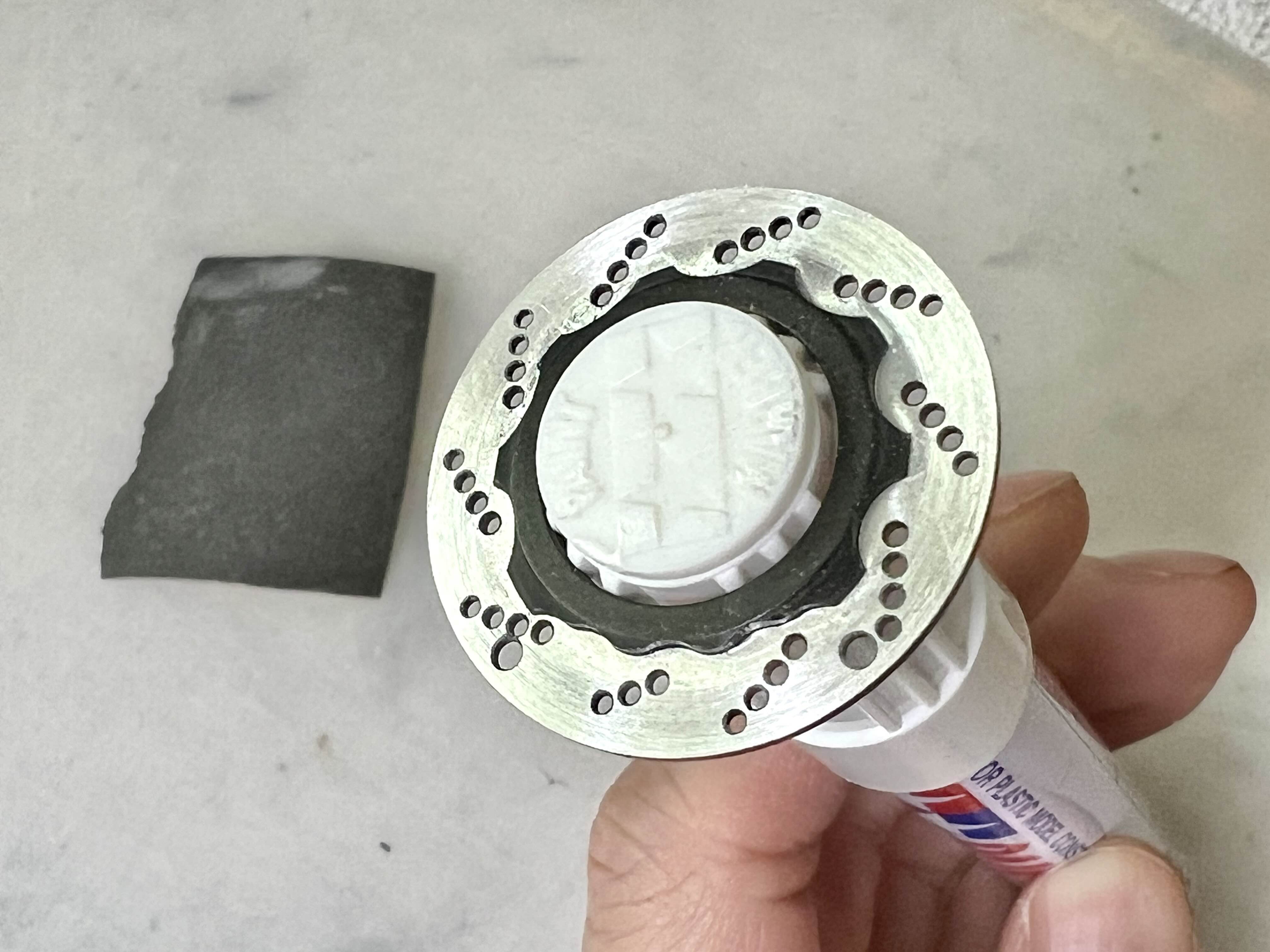 따로 고정하는건 없어서 휠에 에폭시본드(E6000)으로 찍어발라 고정시켜주었습니다.