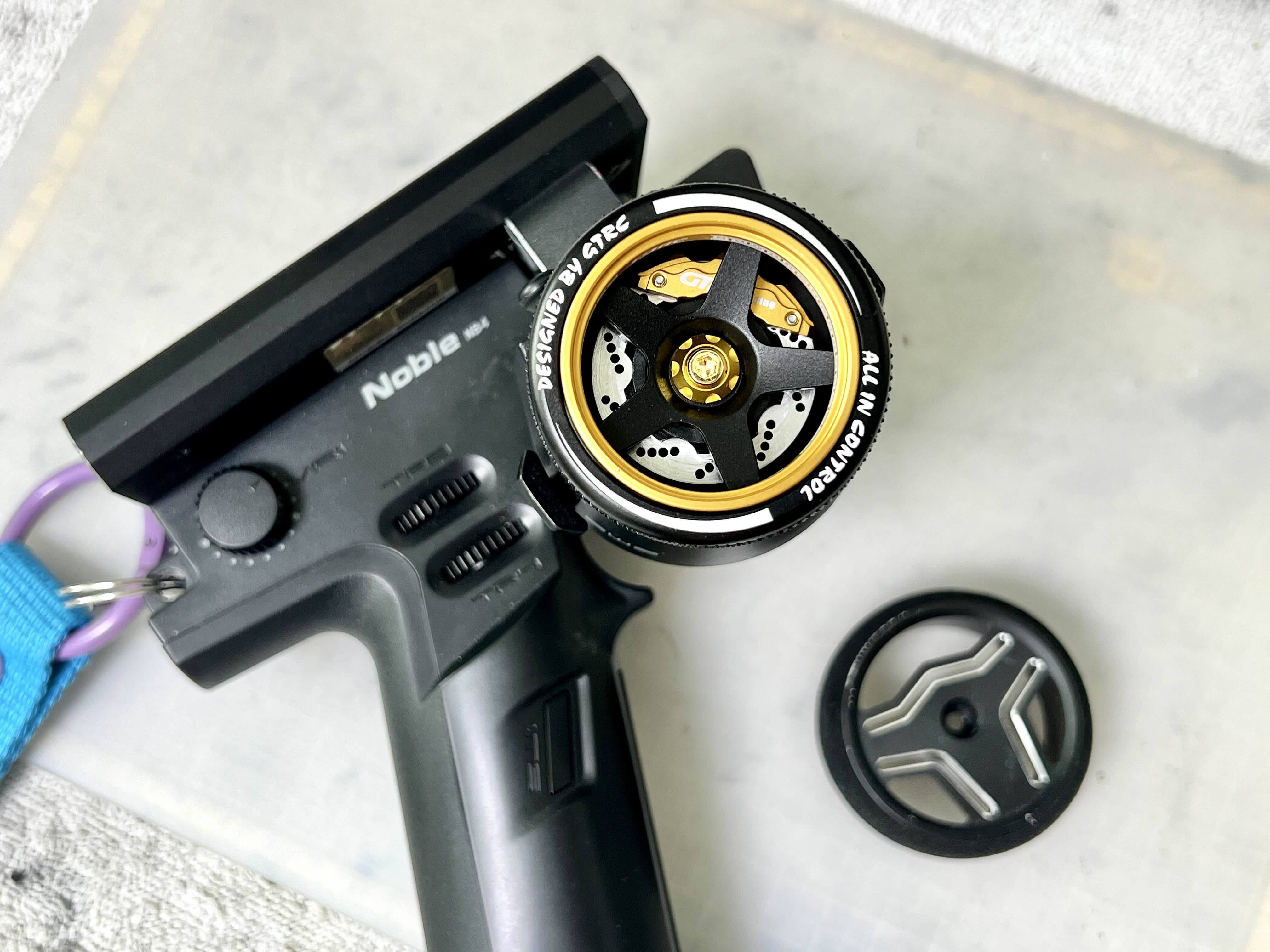 몇번 휠을 장착하고 테스트를 해보니, 조종기와 휠간 간격이 너무 좁아 스티어링 회전시 닿는 문제가 있네요.