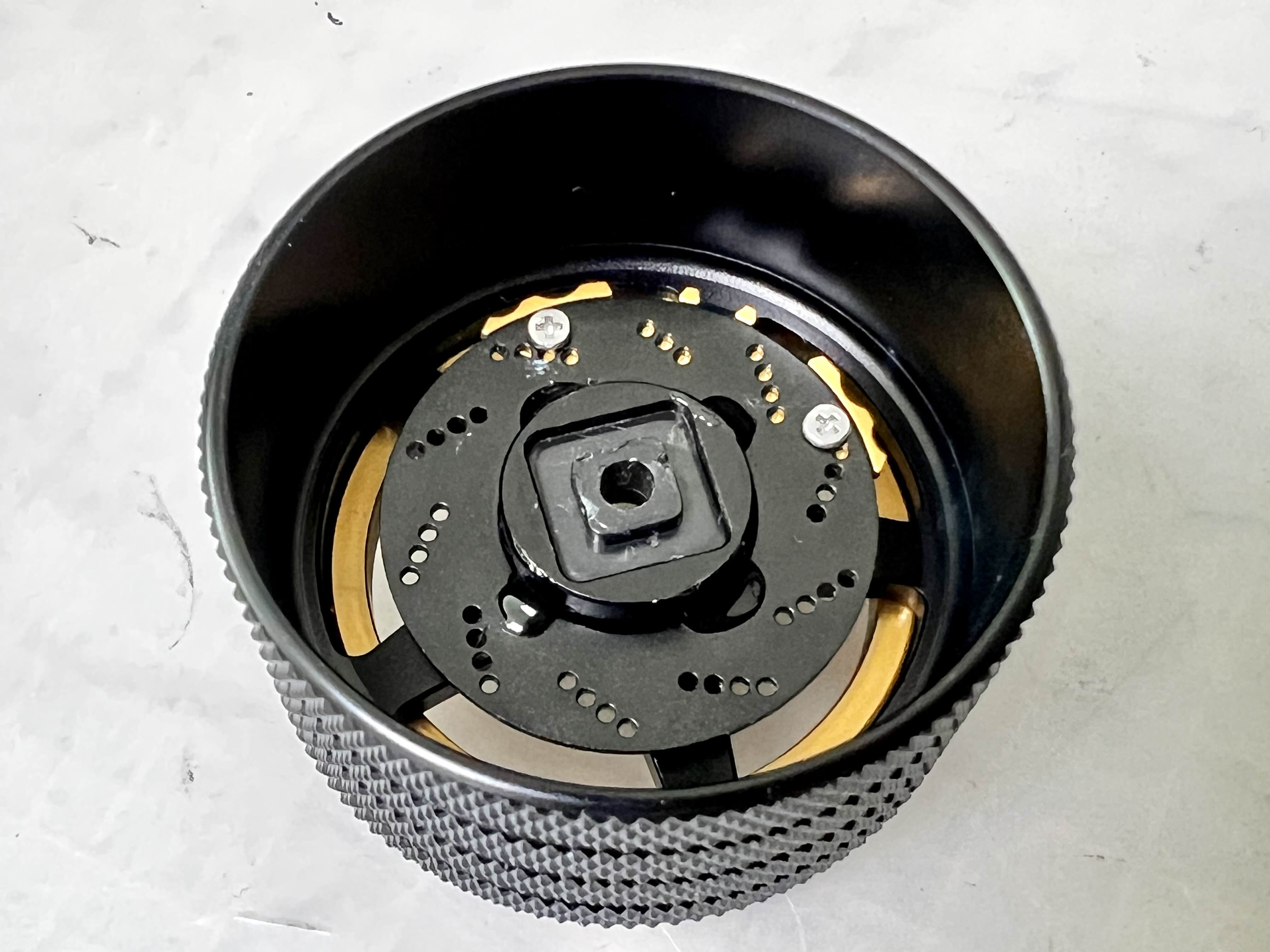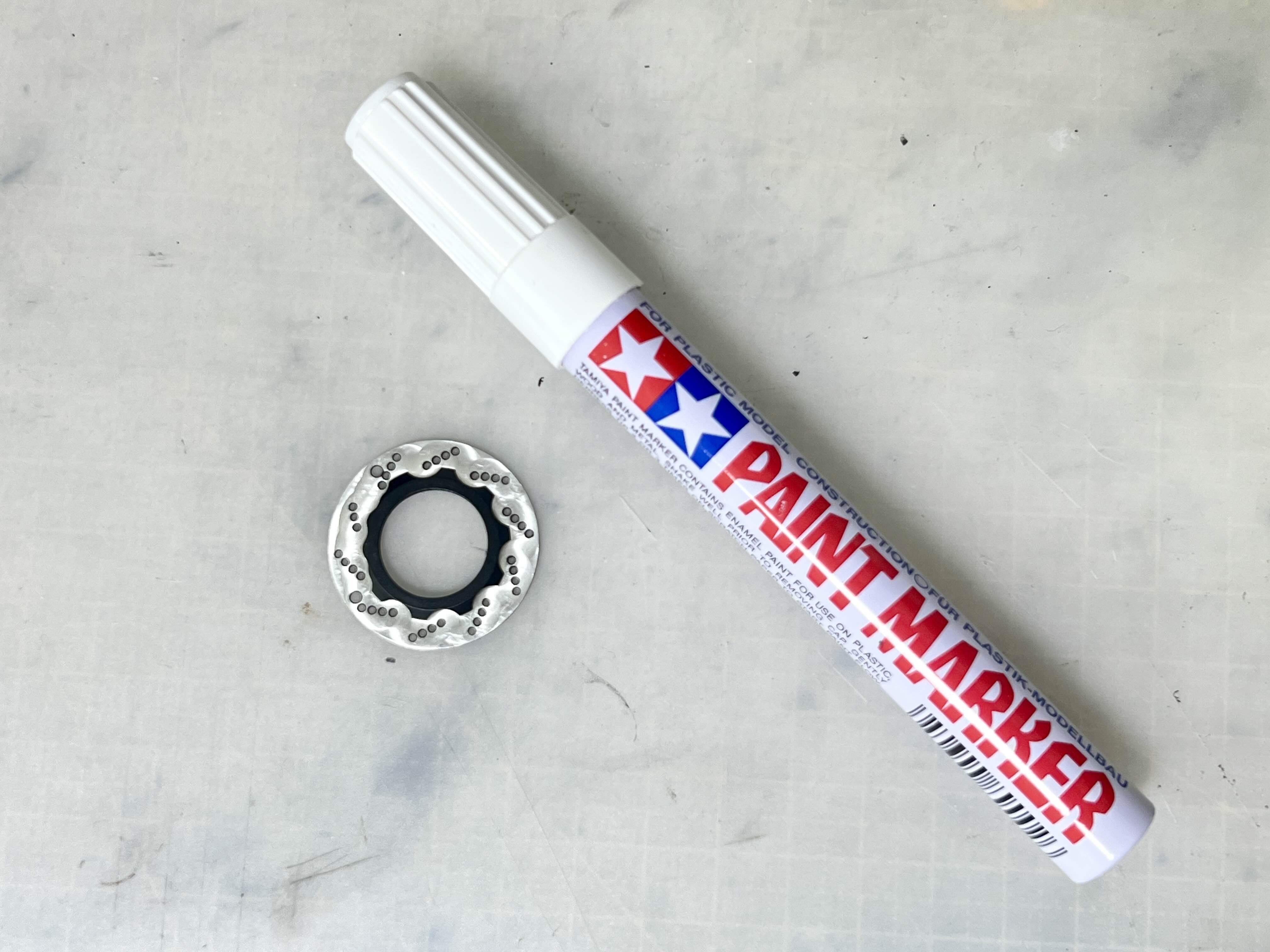 디스크를 회전시켜 직접 스크래치를 넣어줄 생각인데, 이 디스크를 어떻게 회전할까 고민하다가 주위에 있는 타미야 마카펜을 끼워보니 딱 들어맞습니다.
