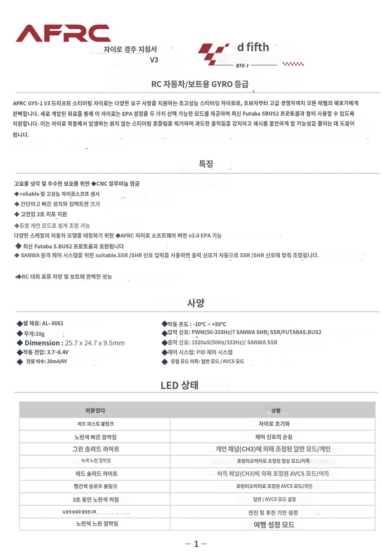 AFRC GYS-1 V3 자이로 모습입니다.