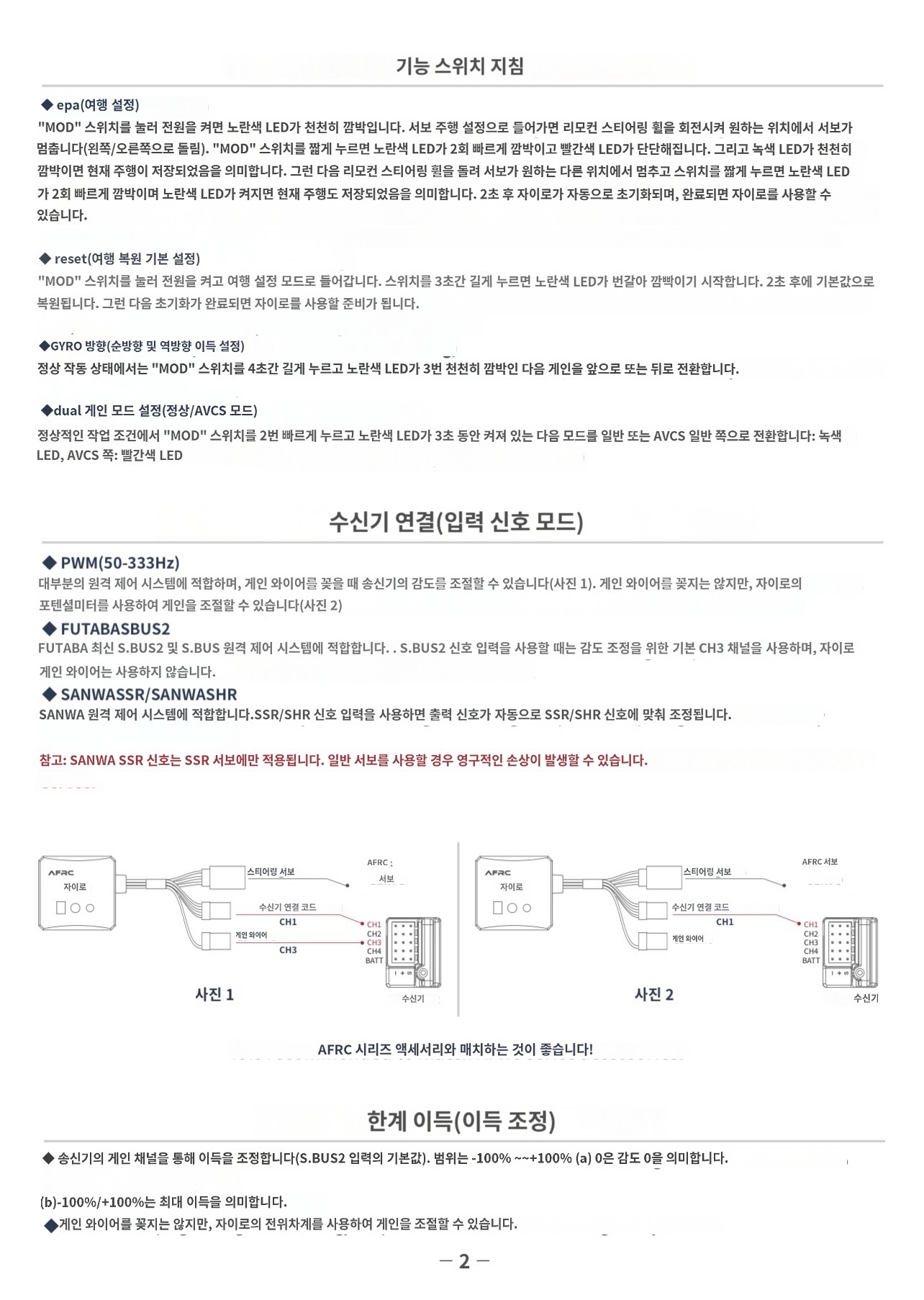 매뉴얼 설명상 AVCS 모드라는게 나오는데, 이는 자이로의 개입이 강한 제어모드를 뜻합니다.