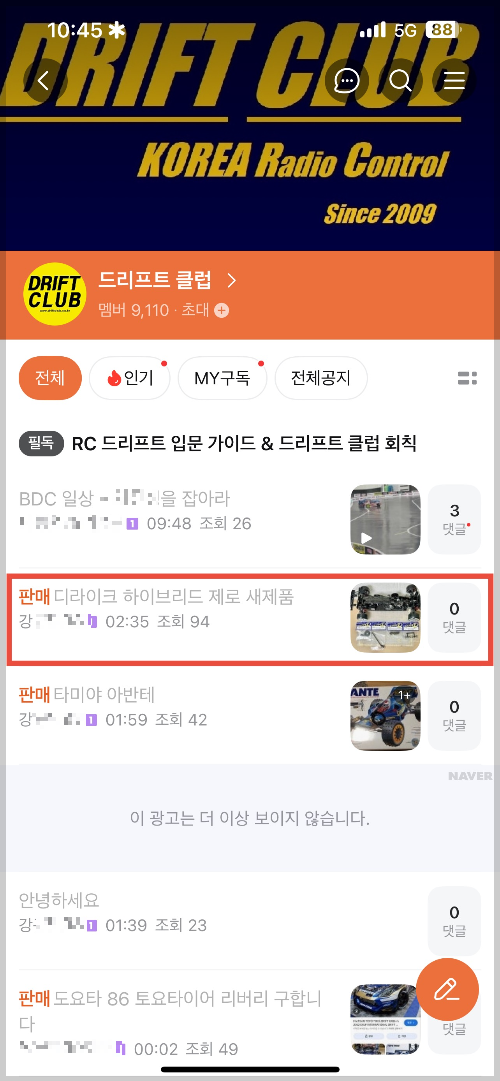 네이버 카페 [드리프트 클럽]을 눈팅하던중