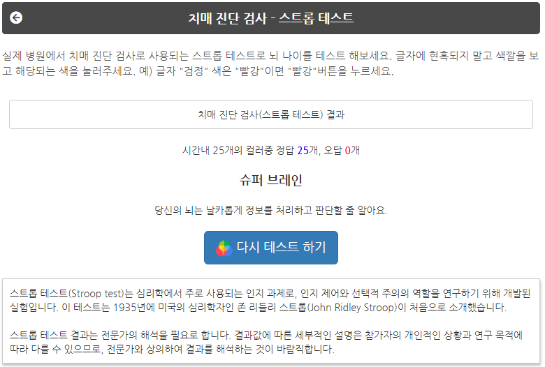 스트롭 테스트 (치매 진단 검사) - 지락실닷컴